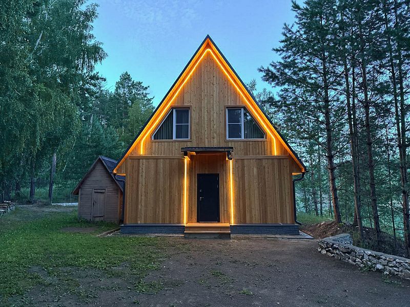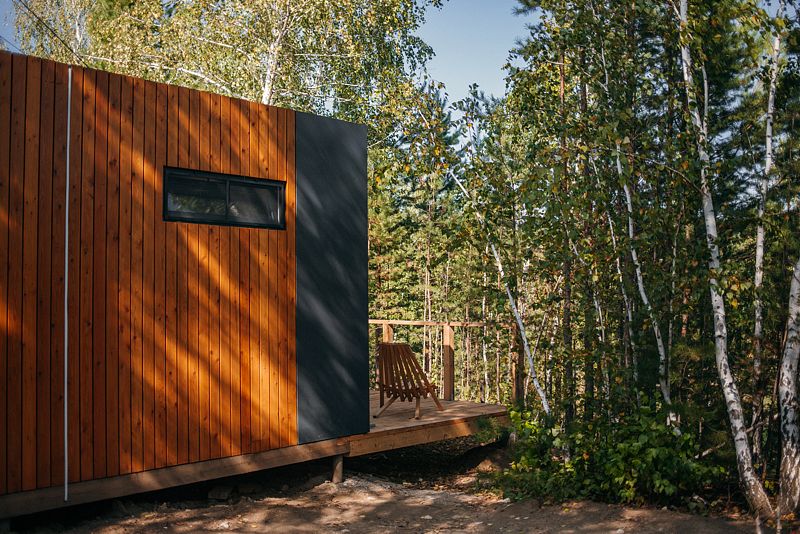 Отдельно стоящий благоустроенный вариант размещения с панорамным окном, санузлом и видом на лес.