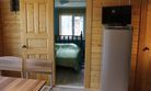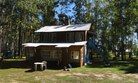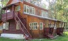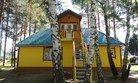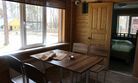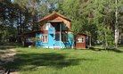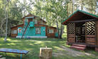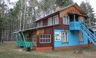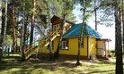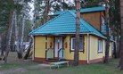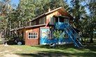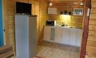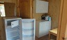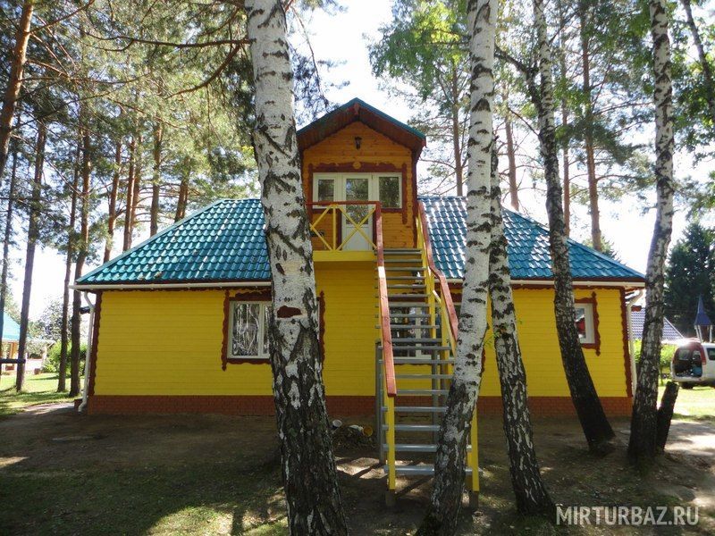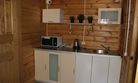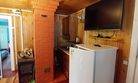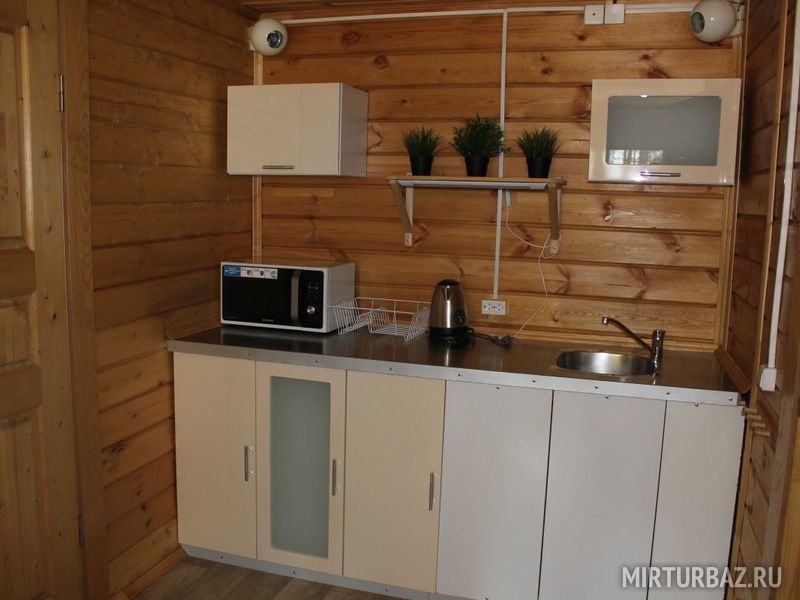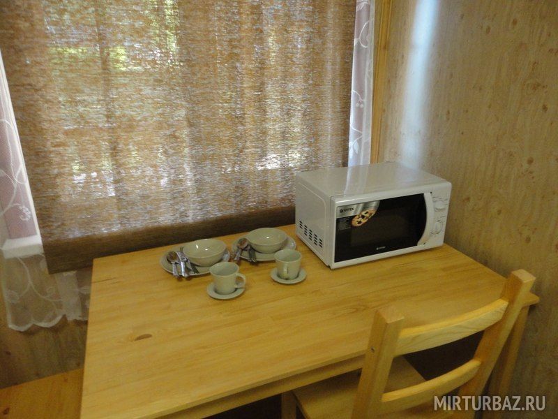 Предназначен для проживания в летнее время (без отопления). Можно поставить калорифер в случае низкой температуры на улице. Есть душ с холодной и горячей водой и санузел. Каждый номер укомплектован мебелью, кухонным гарнитуром, набором посуды, микроволновой печью, чайником. Имеется телевизор, по одному на два номера. Рядом с домом имеется гриль – аренда 1000 руб. в сутки.