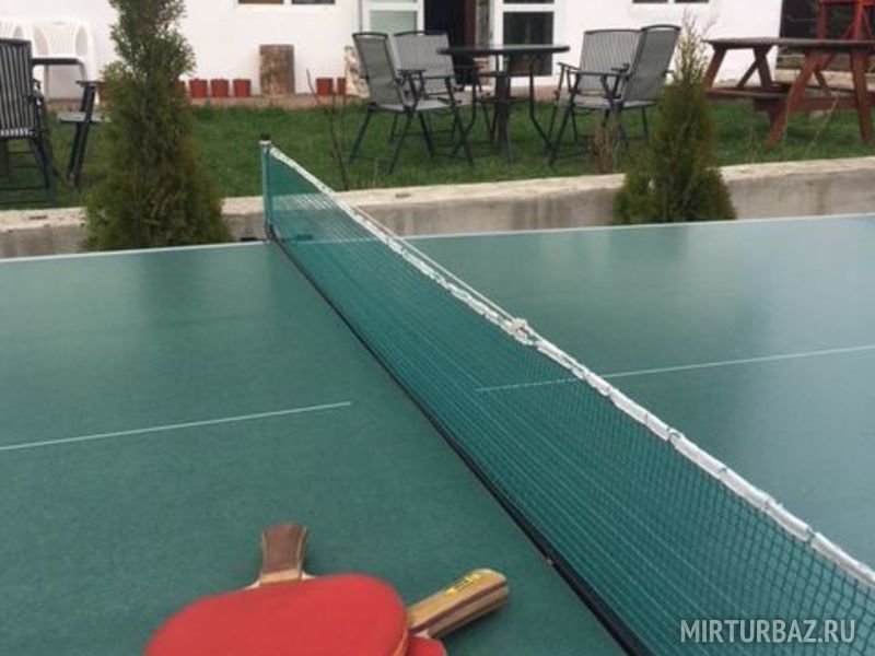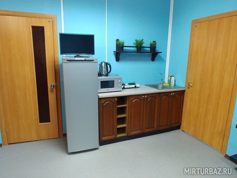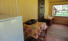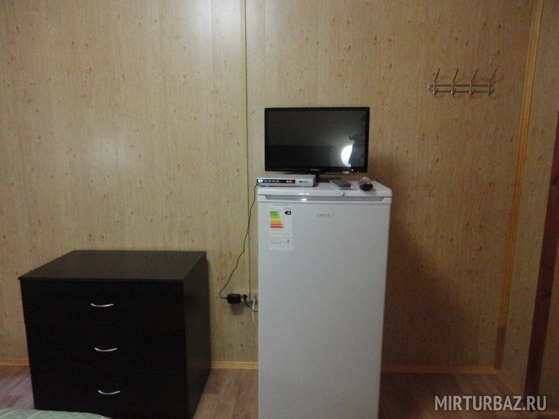 Есть душ с холодной и горячей водой. Каждый номер укомплектован мебелью, кухонным гарнитуром, набором посуды, микроволновой печью, чайником. Имеется телевизор, по одному на два номера (без интернета).
