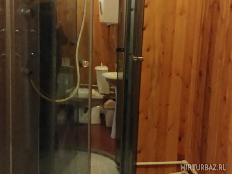 Два санузла внутри дома, по одному на два номера. Есть душ с холодной и горячей водой.