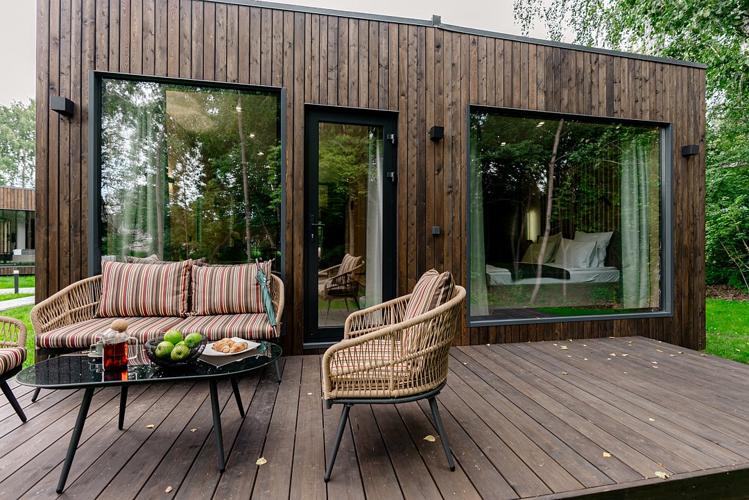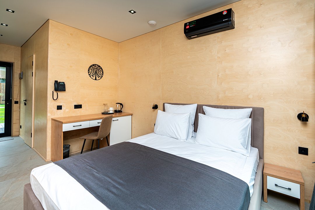 Все постройки находятся на закрытой охраняемой территории, что гарантирует комфорт и безопасность гостей. Для размещения предусмотрены разные форматы проживания: отдельные виллы с приватной террасой и дома, разделенные на три или четыре номера с индивидуальными входами. Внутри номеров – современный дизайн, сочетающий лаконичность и функциональность, есть вся необходимая мебель и техника.