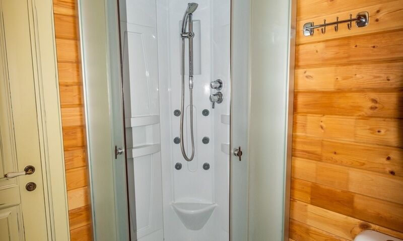 Уютный и вместительный номер располагается на третьем этаже. Комнате присущ баланс пространства и света. Авторский дизайн номера с деревянной мебелью ручной работы. Спальная комната оборудована двуспальной кроватью и раскладным диваном. Прикроватные тумбочки и просторный шкаф дополняют интерьер, способствуя комфортному проживанию. В номере имеются полотенца. Также в номере расположен санузел с душевой кабиной.