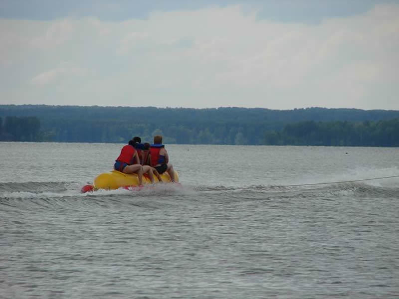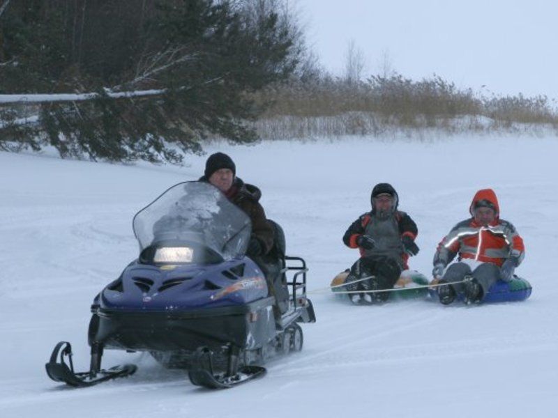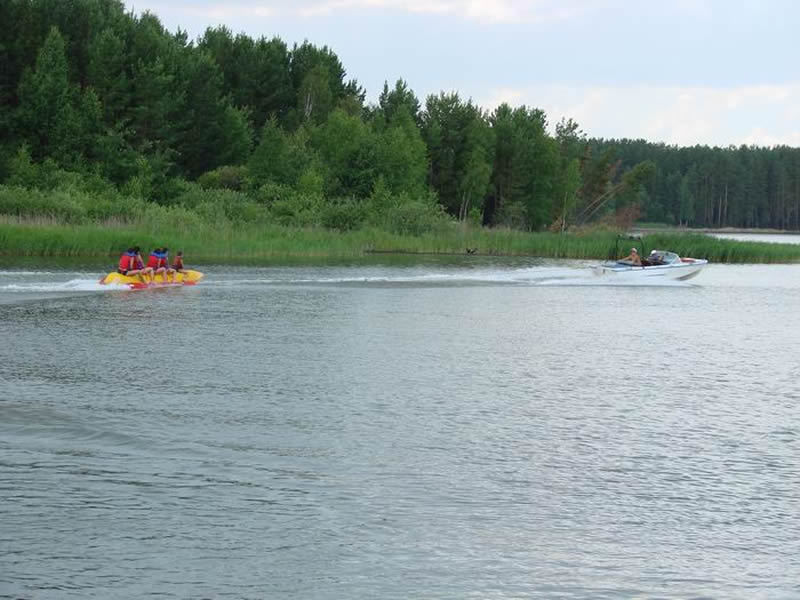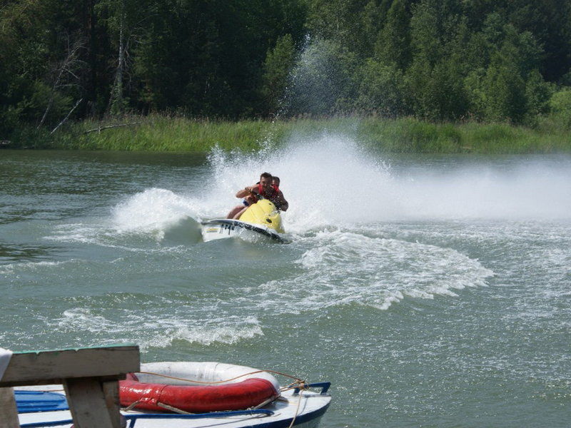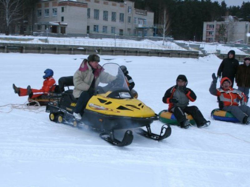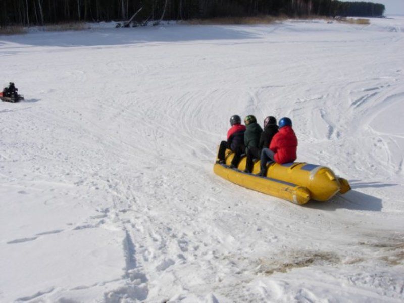 Катание на ватрушке или банане за снегоходом зимой, или за катером по воде летом.