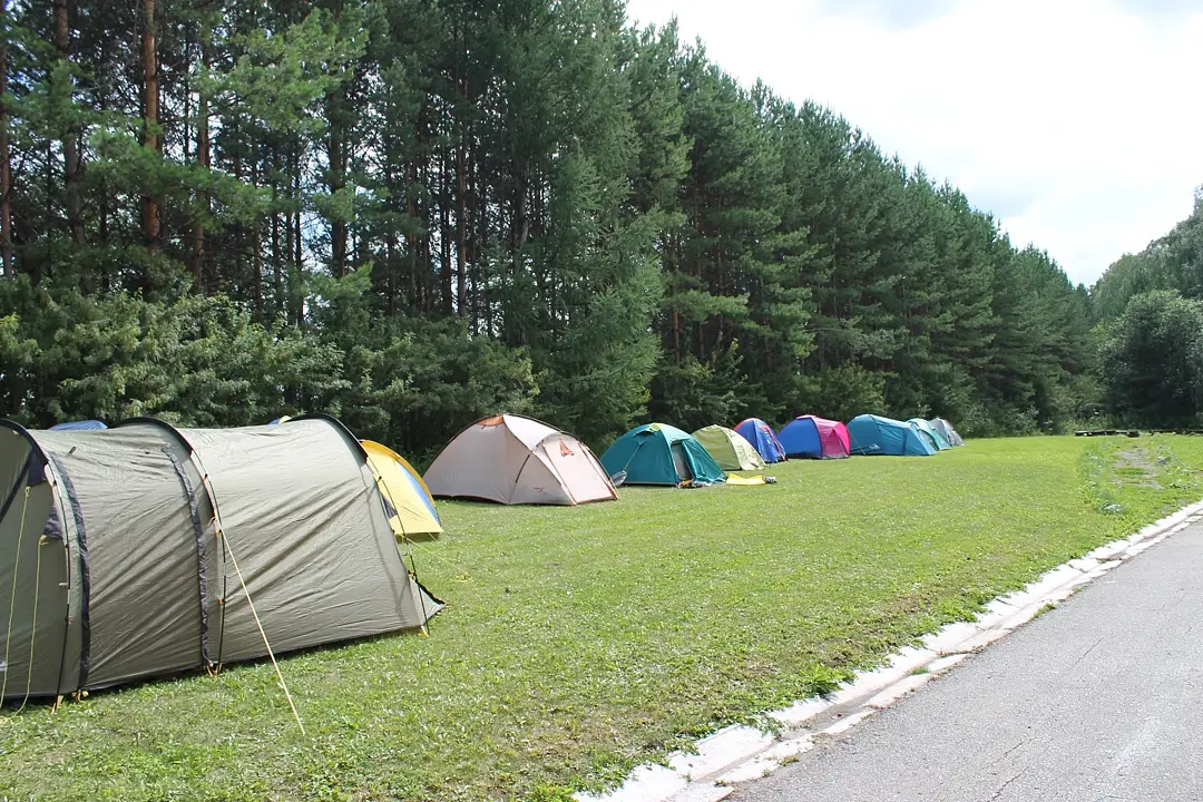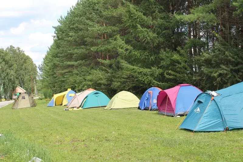 На базе есть палаточные места. Можно приехать со своей палаткой.