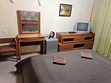 В номере спальный гарнитур, телевизор, кондиционер, холодильник, чайник, посуда, постельные принадлежности, полотенца. Туалет.