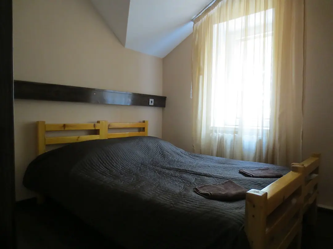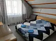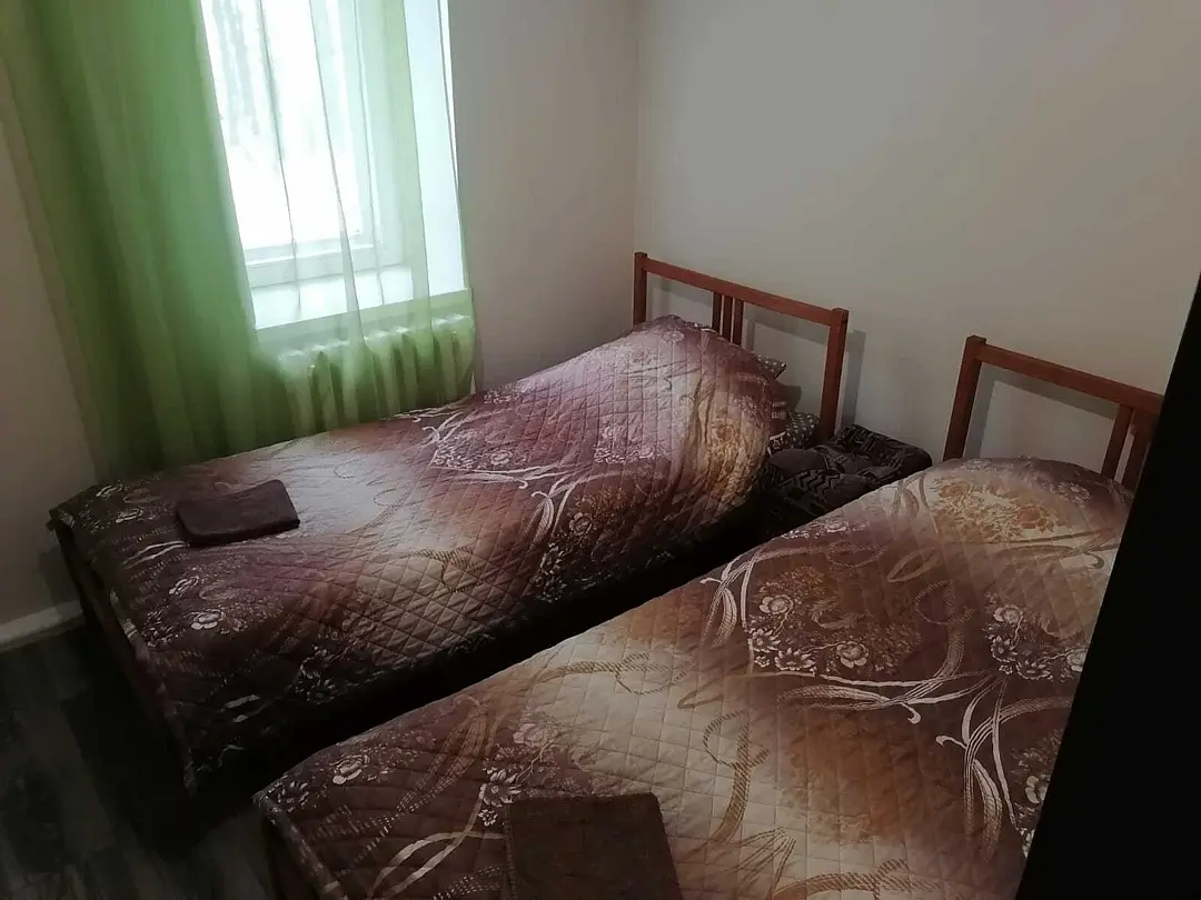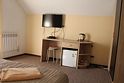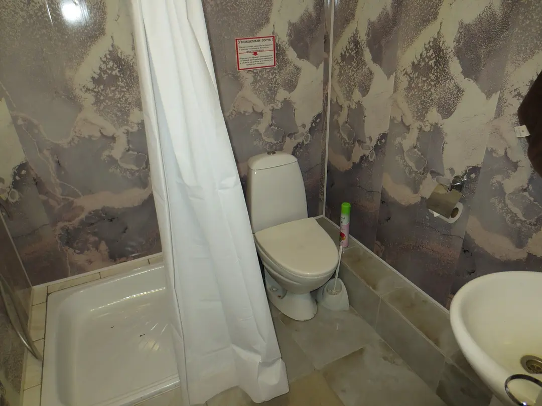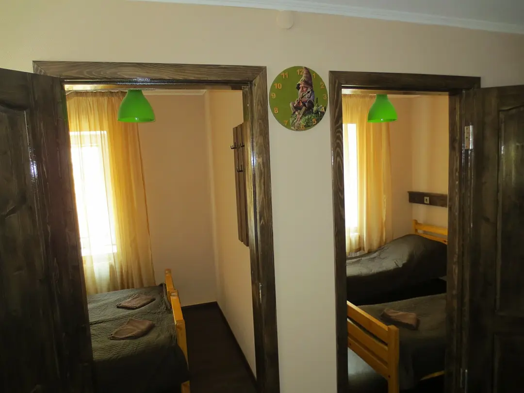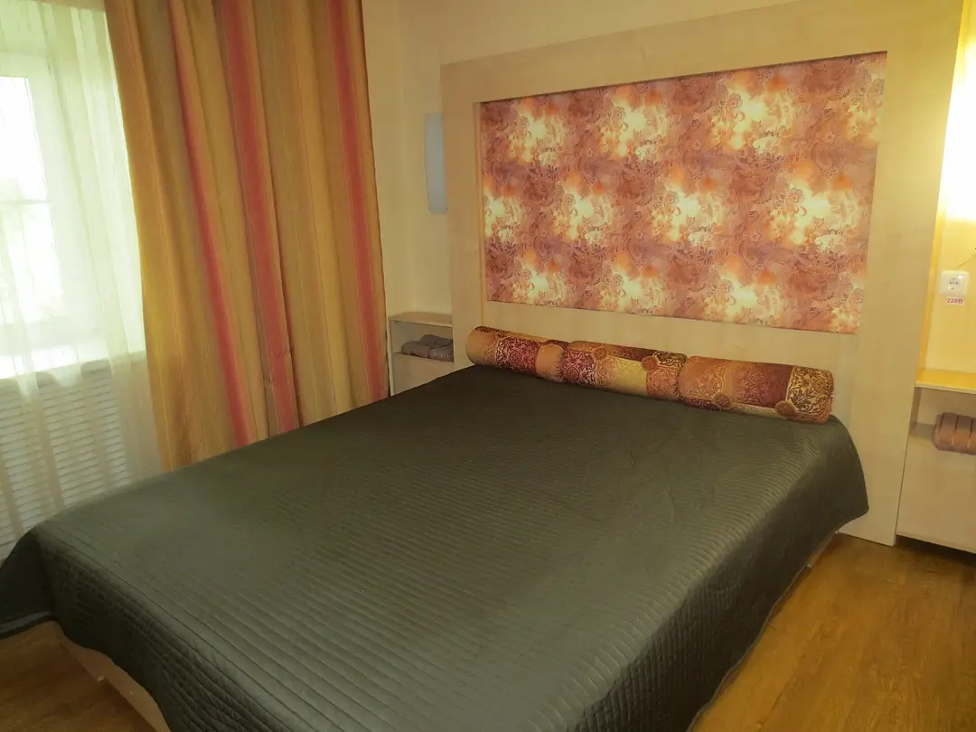 В номере спальный гарнитур, телевизор, холодильник, чайник, посуда, постельные принадлежности, полотенца. Туалет.