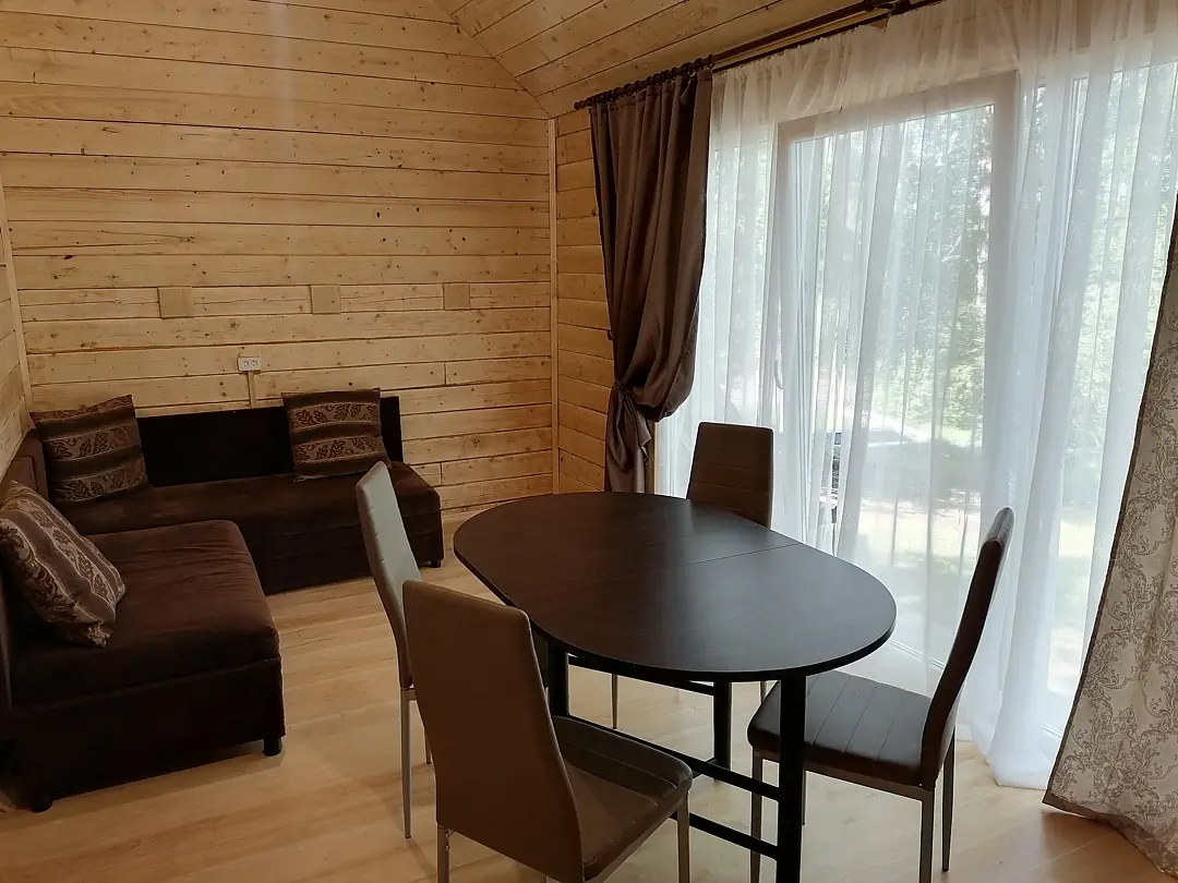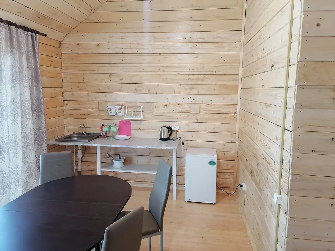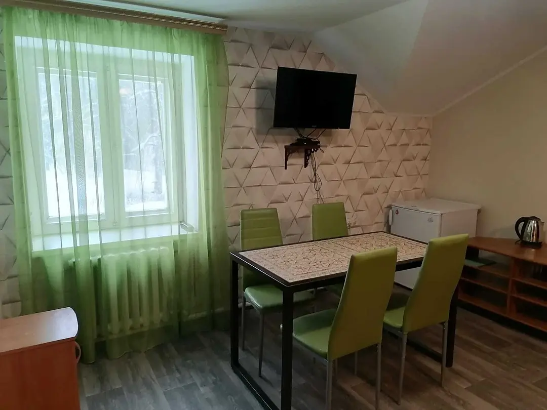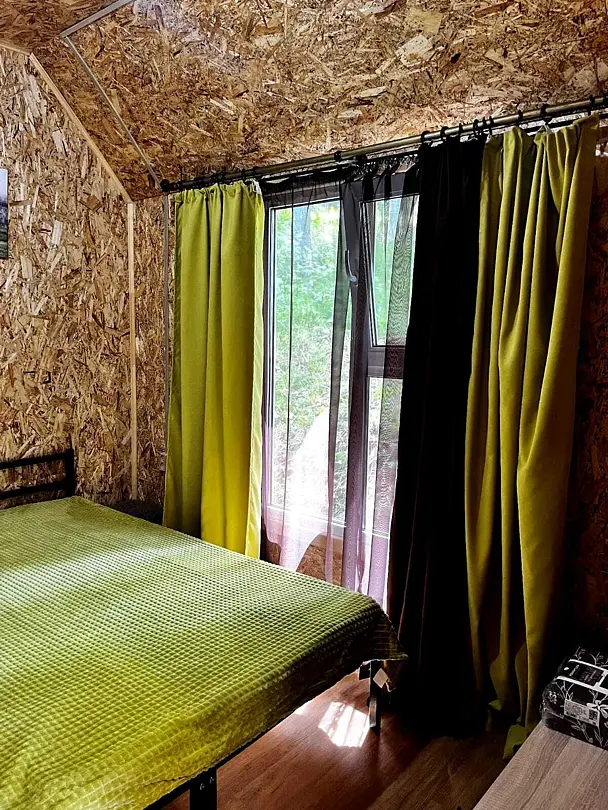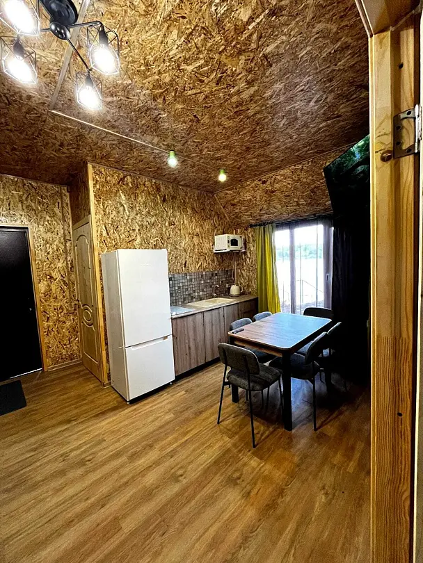 Номер с отдельным входом. В номере диван, обеденная зона, телевизор, холодильник, чайник, посуда, постельные принадлежности, полотенца. Туалет.