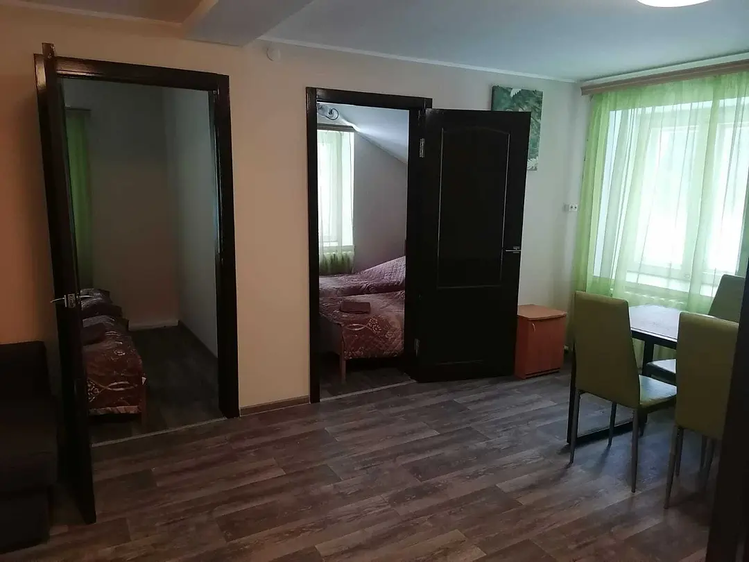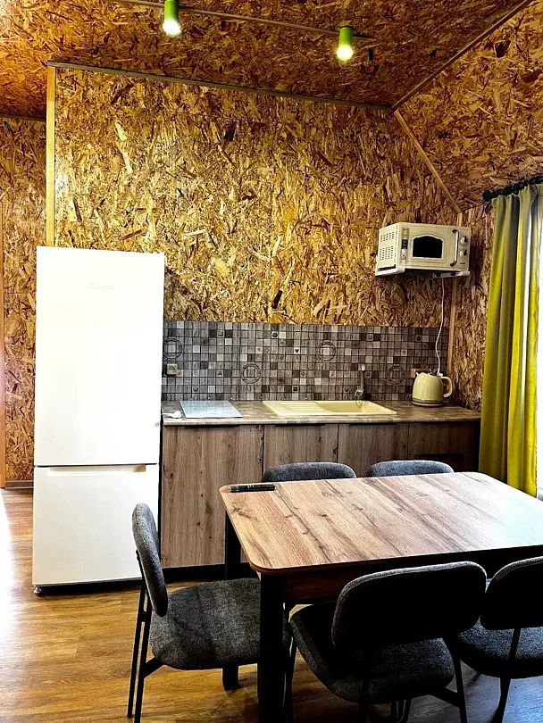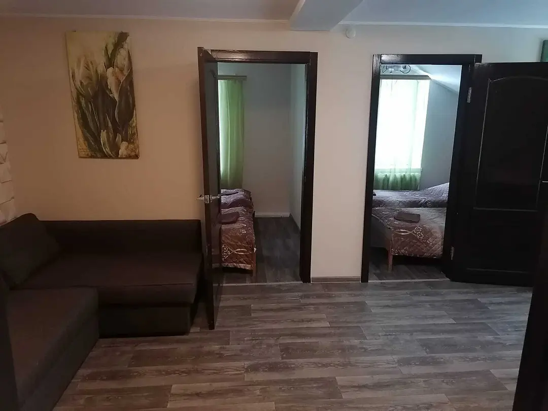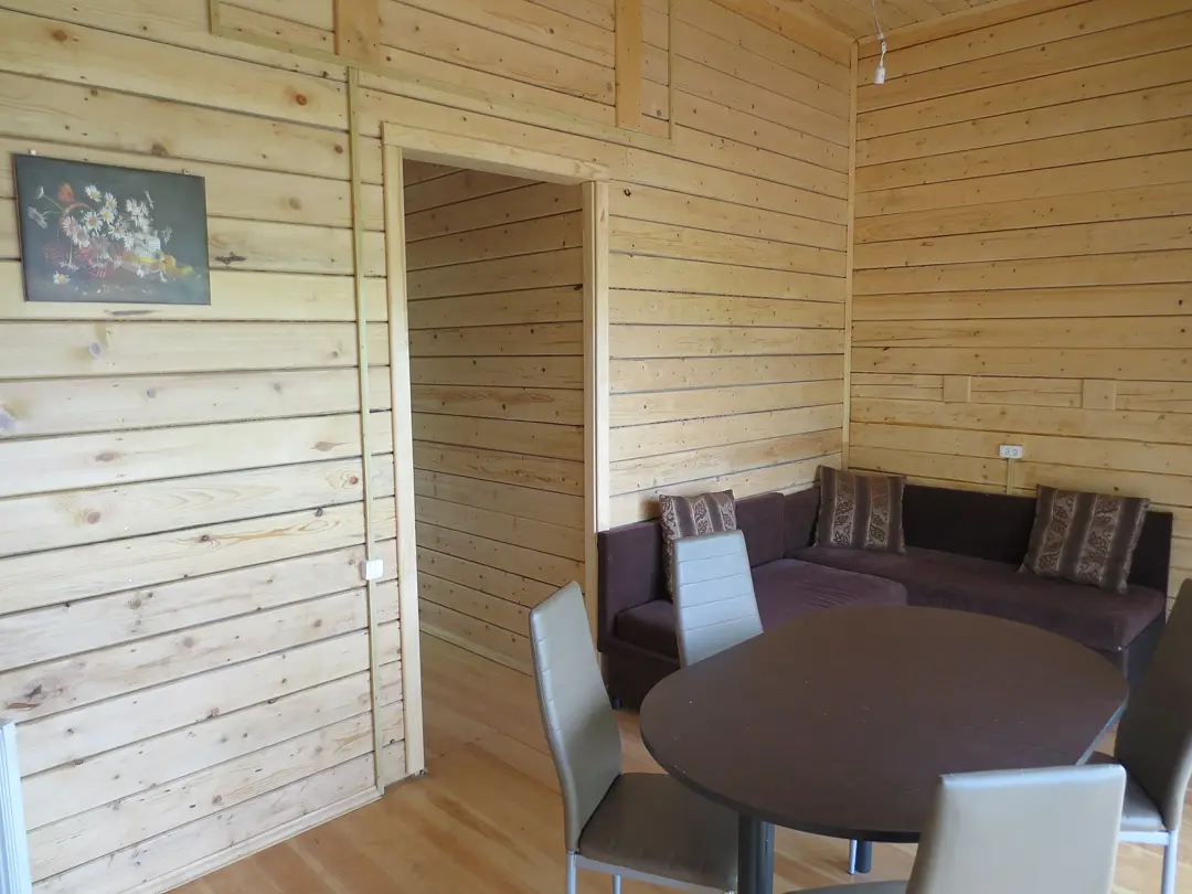 Номер с отдельным входом. В номере диван, обеденная зона, телевизор, холодильник, чайник, посуда, постельные принадлежности, полотенца. Туалет.