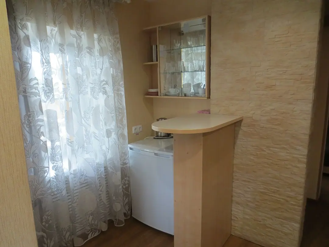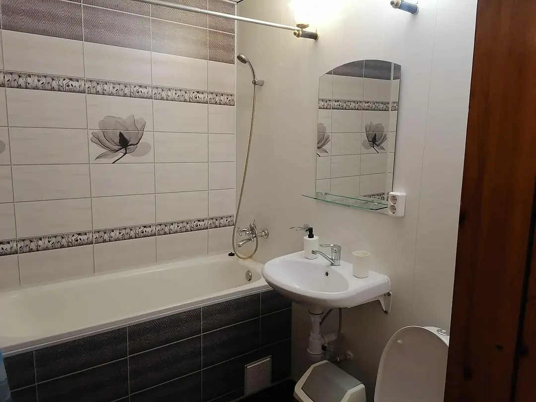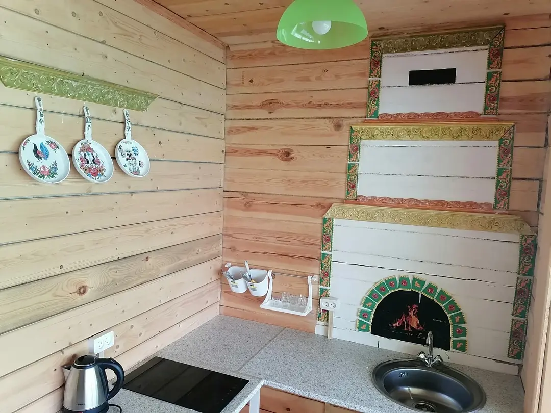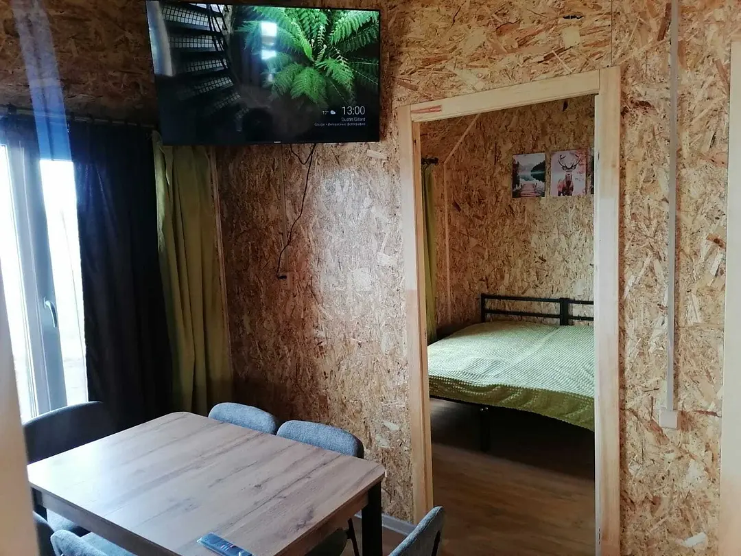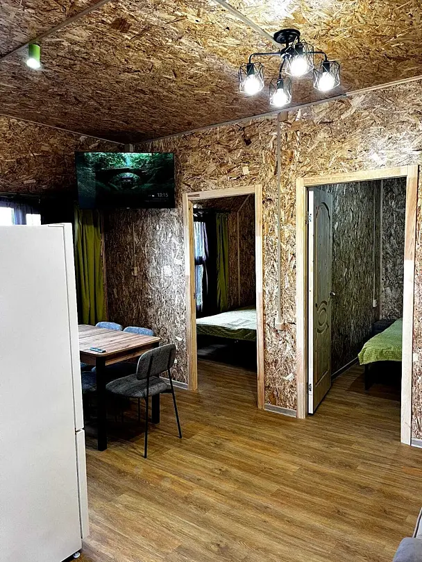 Двуспальная кровать, доп.место – кресло-кровать, гостиная, кухонная зона, телевизор, холодильник, чайник, с/у и душевая