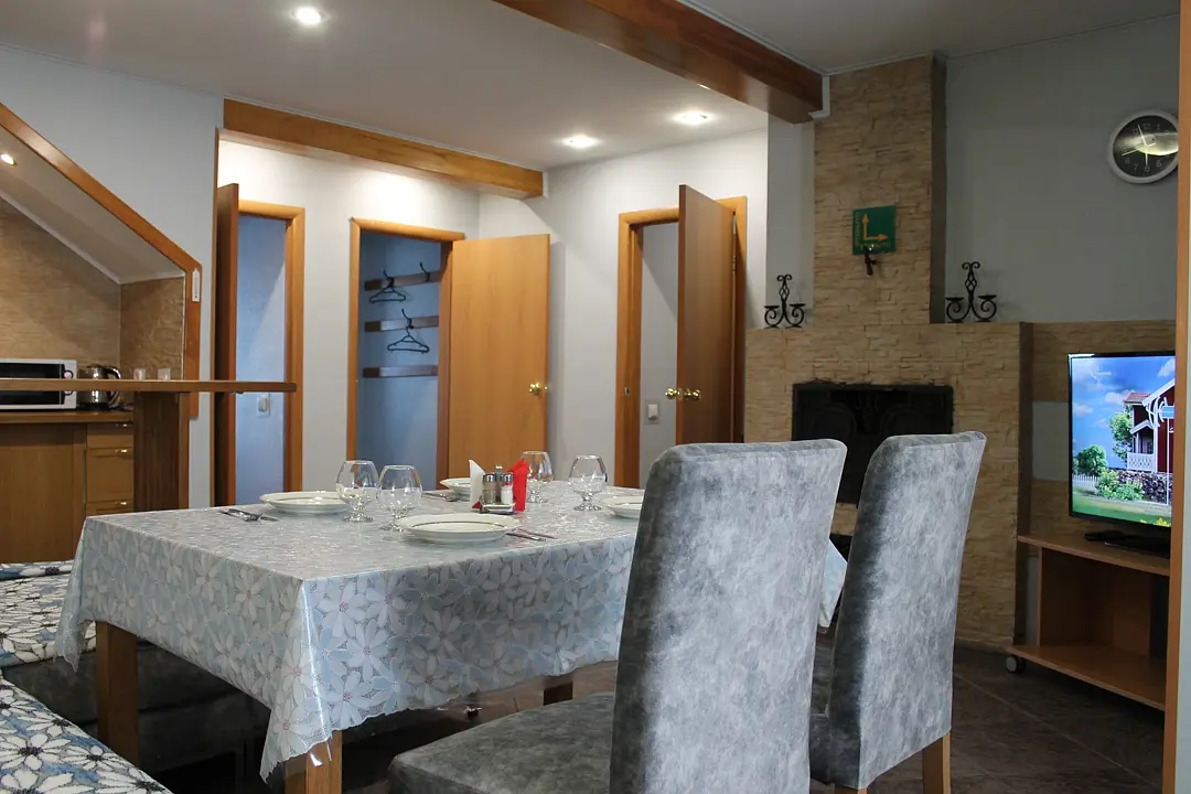 Семейный отдыхДостоинстваОчень живописный вид, большое озеро, ухоженная территория, уютный дом со всем необходимым, хорошая столовая, отзывчивый персонал. С удовольствием посетим ещё это место.