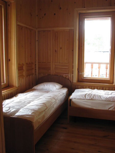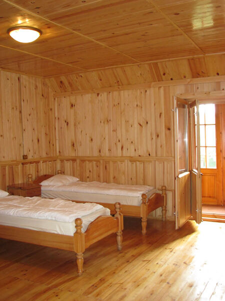 Дом включает в себя банкетный зал, кухню, пять номеров, в которых могут разместиться 11 человек. При желании общее число спальных мест можно увеличить.