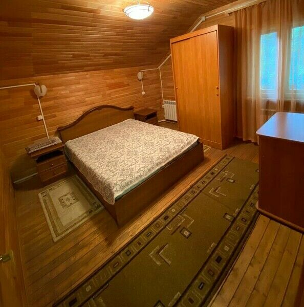 1 этаж: кухня-гостинная, раскладной диван, с/у, 2 этаж: 3 спальни с 2 спальными кроватями,