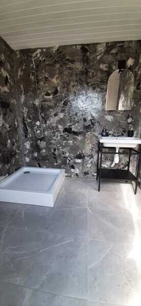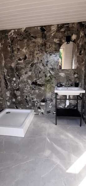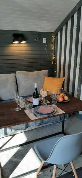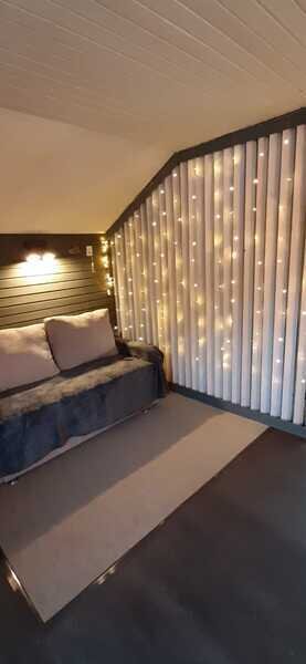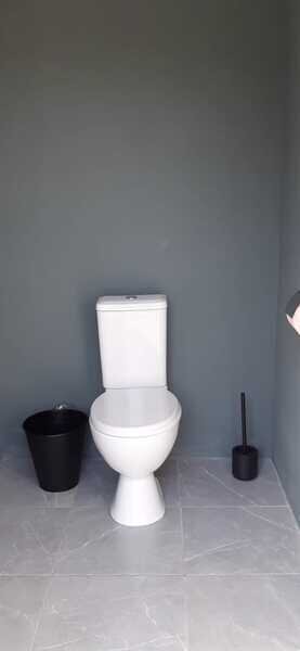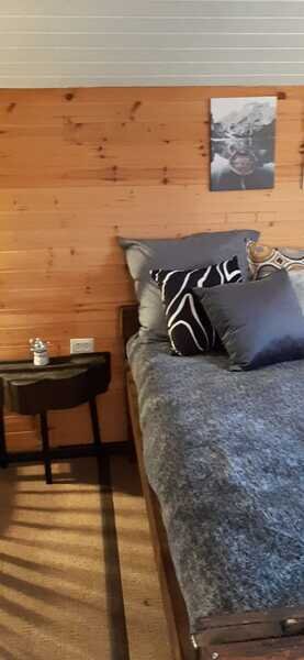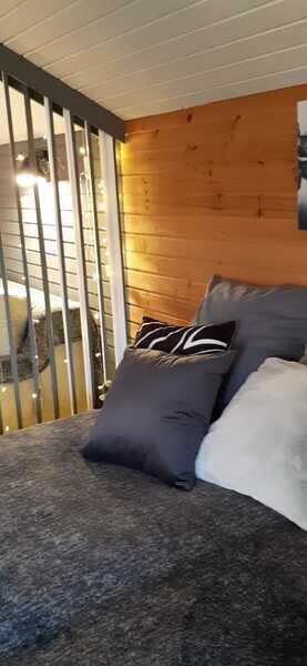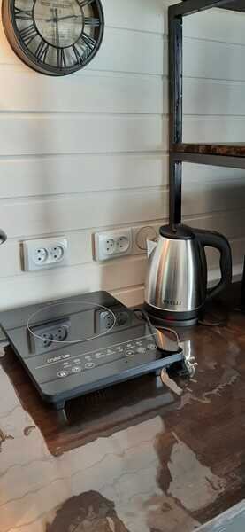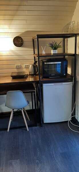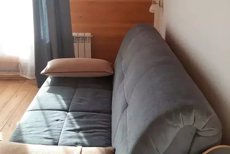 Таунхаус - это одна комната с перегородкой, кухонной зоной, двуспальной кроватью и диваном. Санузел расположен в отдельном здании на территории.