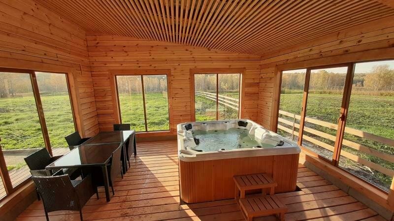 В доме есть настоящий камин с живым огнем, огромный плазменный телевизор со спутниковым TV, оборудованная по последнему слову техники кухня, современная ванная комната с теплым полом, феном и всем к чему привык современный житель мегаполиса.