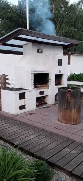 Вы любите отдыхать на берегу реки, гулять по лесу, дышать ароматом хвойного воздуха? Тогда Вам понравится пребывание в гостевом доме «Земляничная поляна». Проживание в комфортабельном и уютном доме оставит самые приятные воспоминания об отдыхе. Вас впечатлит зона барбекю: русская печь, коптильня, гриль-камин. Настоящий рай для любителей русской кухни и приготовления блюд на углях.