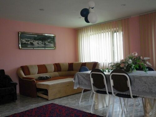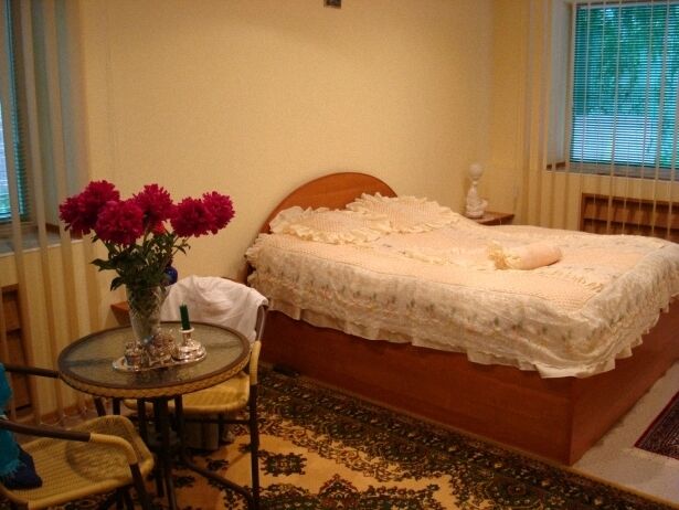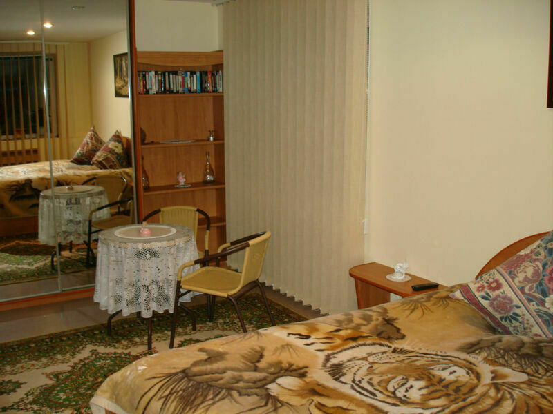 Две спальни с двуспальными кроватями, банкетный зал с двумя диванами, оборудованная кухня, санузел, холодильник, шкаф-купе, стиральная машина, телевизор, DVD, караоке, музыкальный центр, фен, утюг с гладильной доской.
