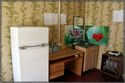 Холл-кухня (умывальник с холодной водой, стол, стулья, холодильник, электроплитка, чайник, посуда, кухонная утварь), две спальни, туалет. Общий душ в бане с 8:00 до 15:00. Мангальная зона с уличным столом под навесом.