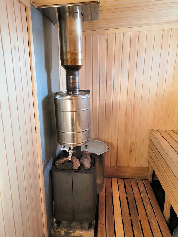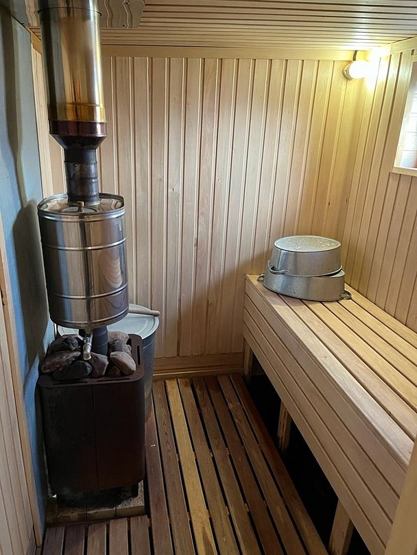 Баня на дровах с предоставляется по предварительному заказу. Есть купель с минеральной водой.