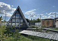 В доме в стиле А-frame (розовый) бани нет.