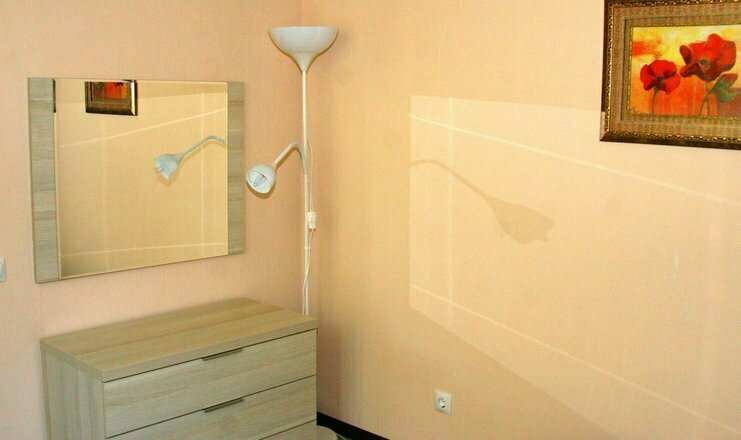 Гостиная: шкаф, диван 2-х местный, журнальный столик, холодильник, чайник, фен, чайные пары, душ, санузел, кондиционер, телевизор. Спальня: двуспальная кровать, прикроватные столики, кондиционер.