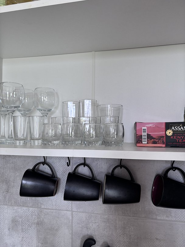 В кухонной зоне имеется чай, кофе, соль, сахар, масло растительное. Питьевую воду нужно брать с собой!