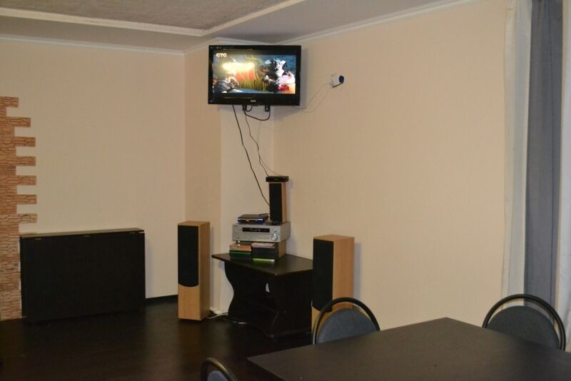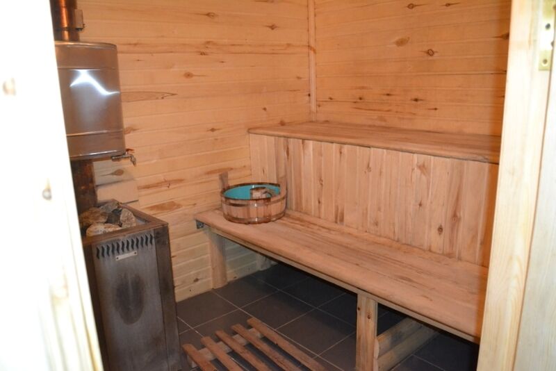 Раздевалка, комната отдыха: стол, скамейки, ТВ, муз. центр, чайник, душ, простыни, санузел. -