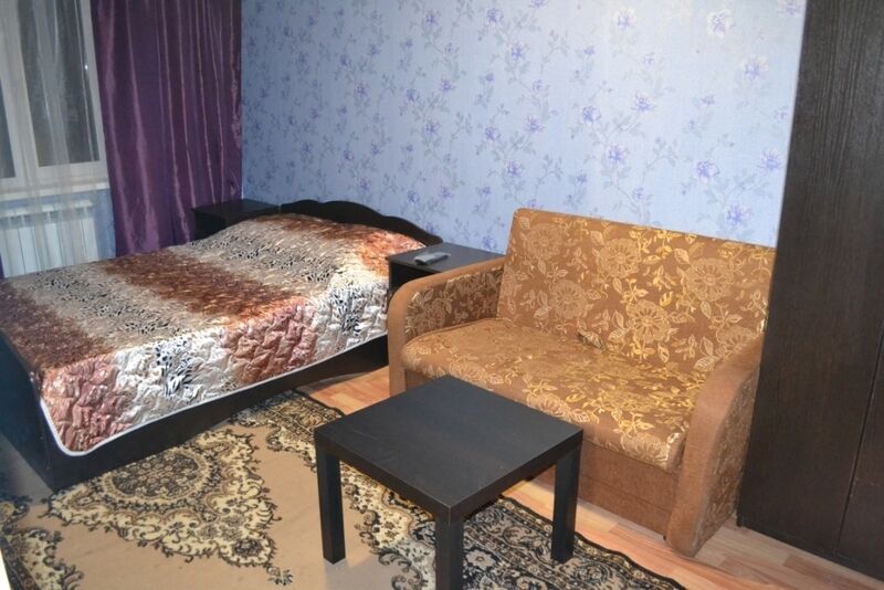 Двуспальная кровать, телевизор, стол, шкаф, диван, кухонная зона (СВЧ-печь, набор посуды, чайник, холодильник), душевая кабина, санузел.