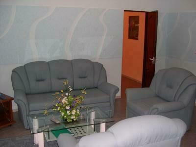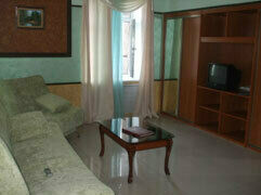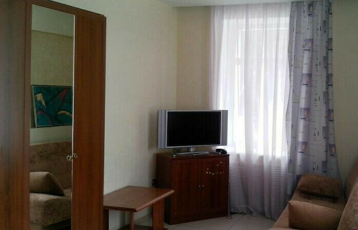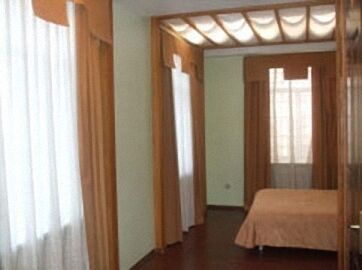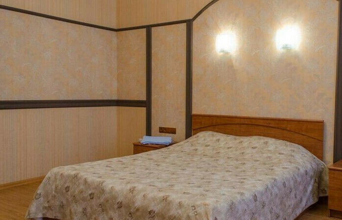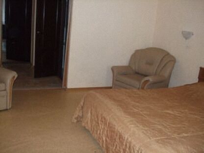 Двухкомнатные апартаменты, спальня с двуспальной кроватью, гостиная с мягкой зоной, шкаф, столик, тумбы, телевизор, холодильник, туалет, умывальник, душ.