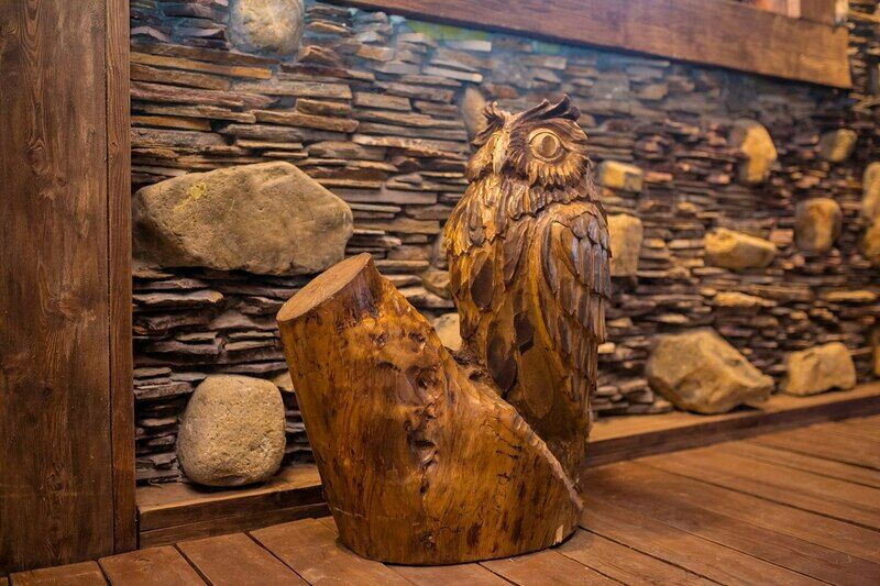 Семейный отдыхДостоинстваУ этого места очень большая площадь, сама территория закрыта. Коттеджи выполнены в прекрасном дизайне, был водоем с рыбками и со статуей. Можно посидеть во дворе и наслаждаться свежим воздухом, также есть большой мангал и казан, все очень хорошо продумано для комфорта гостей. Все выполнено гармонично и прекрасно, есть большая гостиная, в которой стоит камин, вся мебель была выполнена из дерева, она ручной работы. Для гостей готовят русскую баню.