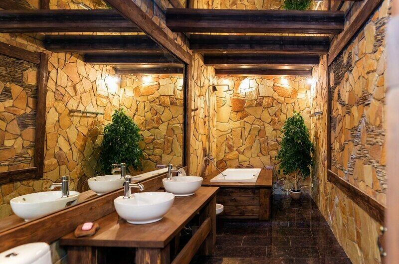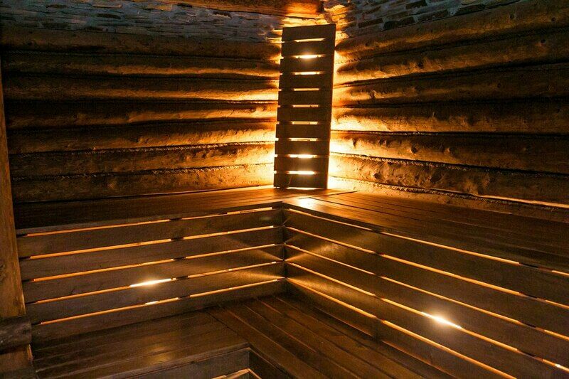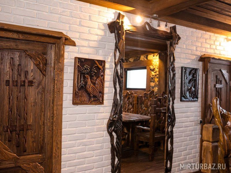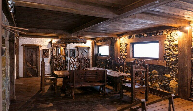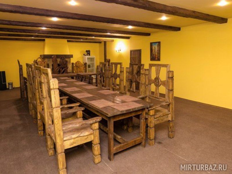 - русская баня на дровах (влажная парная на 12 человек, комната отдыха с диваном, стол с эксклюзивными стульями, отдельная раздевалка, две душевые из массива дерева),