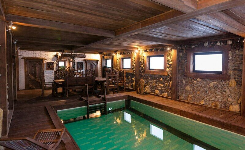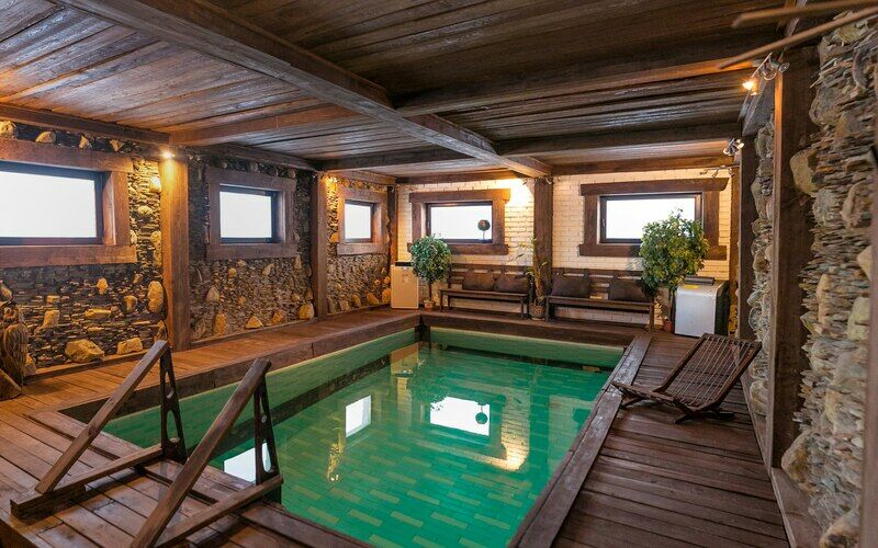 При банном комплексе усадьбы работает крытый бассейн, оборудованный автономной системой очистки воды. Эта современная система обеспечивает постоянную фильтрацию и очистку в круглосуточном режиме.