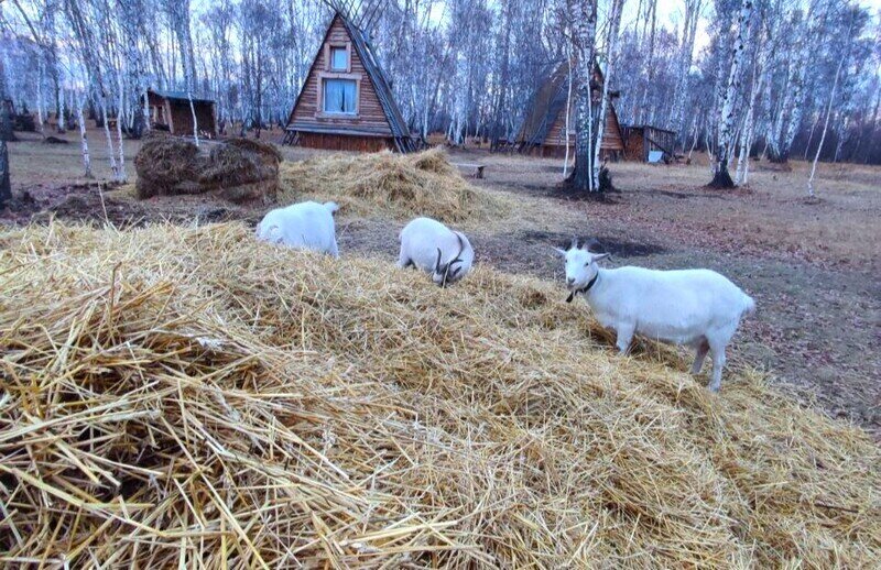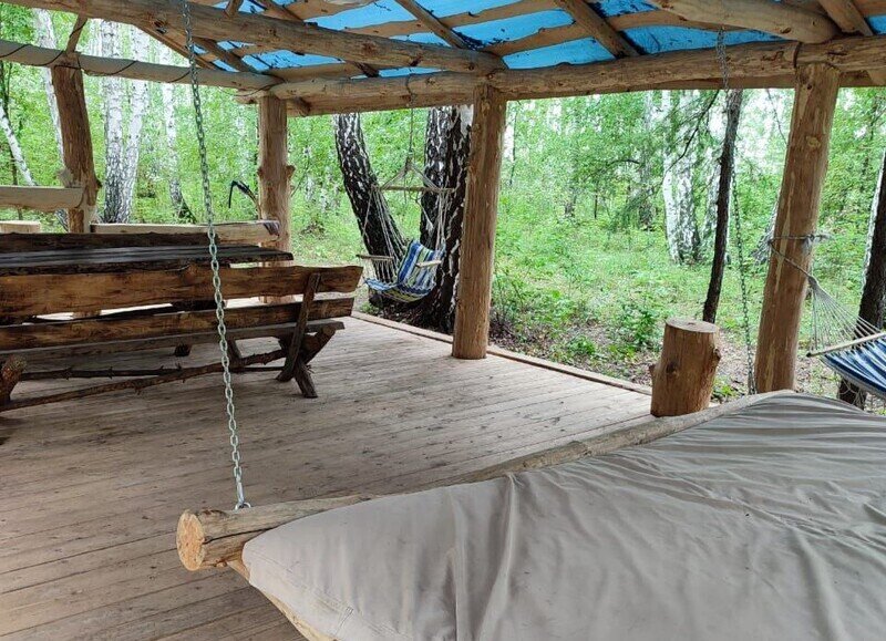 Не выбраноДостоинстваНам с мужем,как любителям деревенского отдыха,понравились деревянные домики с декорациями ручной работы,водоем с мосточками для рыбалки,козочки,которые свободно гуляют по территории,кролики,коровки пасутся в лесу,а в лес можно выйти прямо с территории базы.Мы снимали комнатку на двоих без окна в большом доме,это экономный,но очень комфортный вариант- на первом этаже домика есть туалет,душ и кухня со всем необходимым,баня входит в стоимость проживания.Выехали на сутки совсем недалеко от города и окунулись в деревенскую атмосферу,оторвались от городской суеты,чистый воздух,тишина.Очень понравилось,обязательно вернёмся.