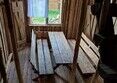 2-й этаж: 1 двуспальная кровать — 1,6м. Рядом с домиком мангальная зона (мангал, стол, лавки).
