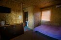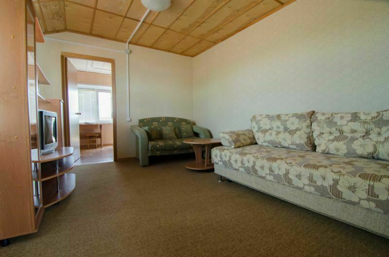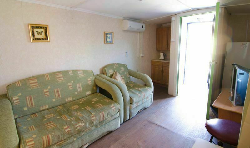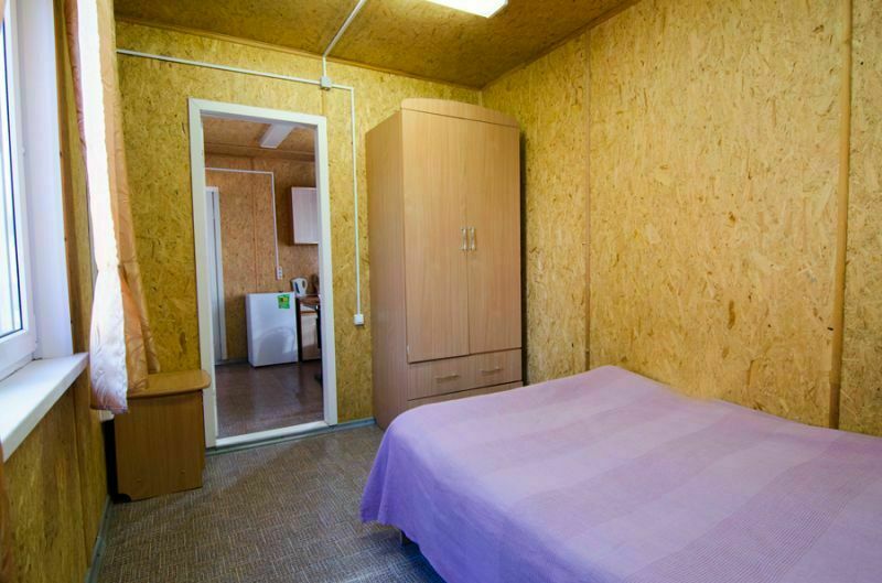 Вагочик состоит из двух смежных комнат. В одной комнате двуспальная кровать, в другой двуспальный диван. Удобства в 10 м от вагончика - капитальное строение, в нём располагается туалет и душ.