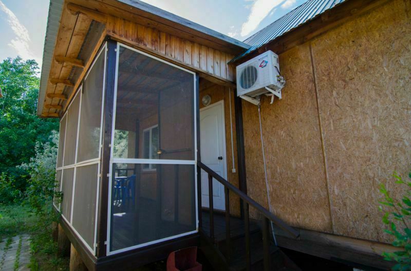 Домик состоит из кухни и двух несмежных комнат. Имеется веранда с противомаскитной сеткой. Удобства в 10 м от домика - капитальное строение, в нём располагается туалет и душ.