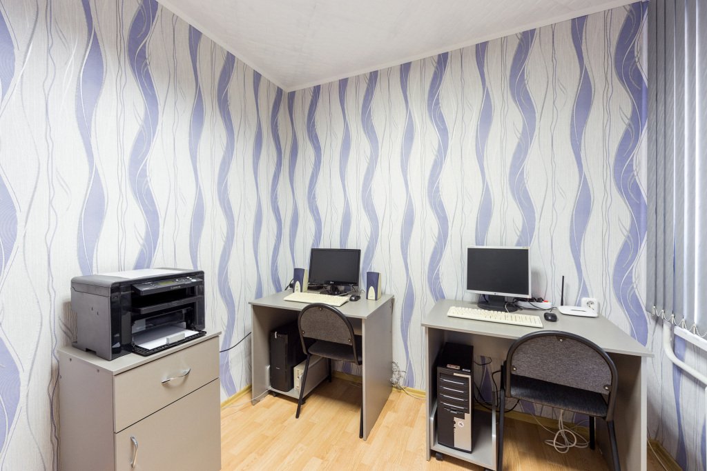 Комната оборудована всем необходимым для работы за компьютером вне собственного рабочего места. Высокоскоростной интернет, принтер, сканер, рабочий стол.