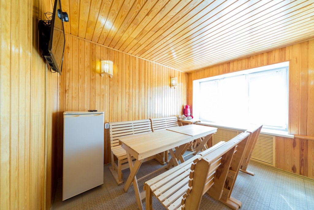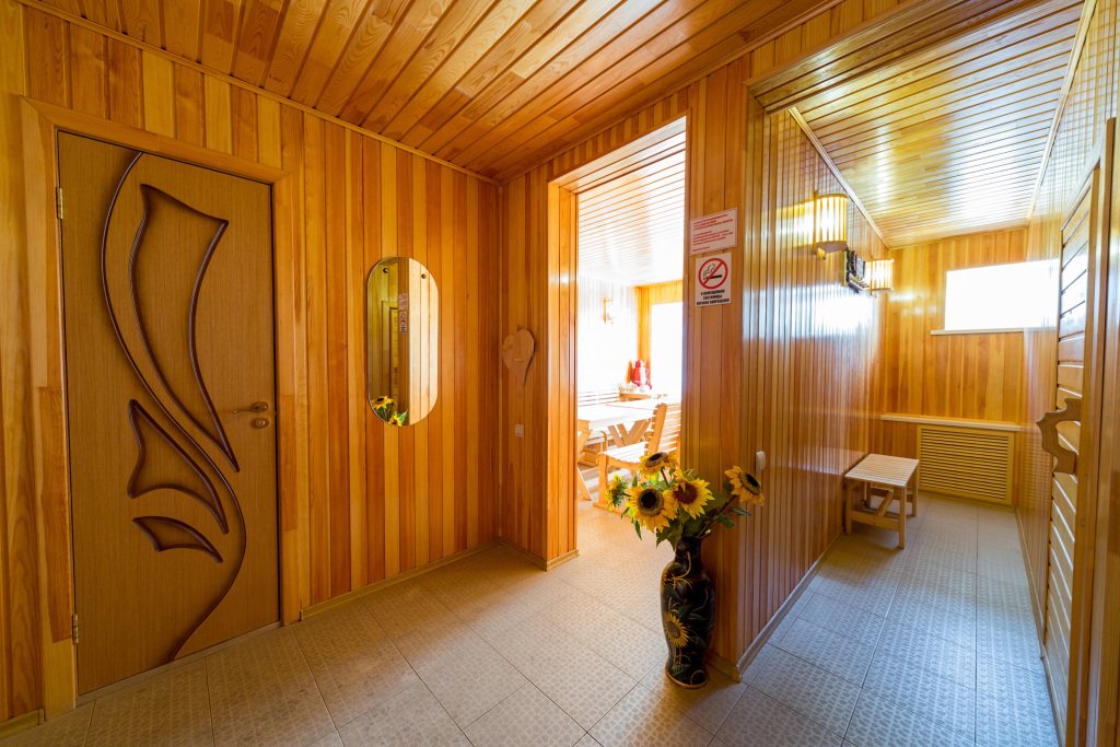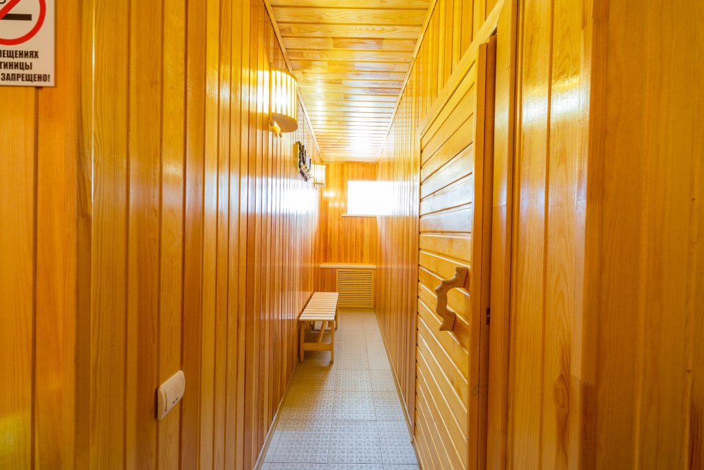 Имеется собственная сауна вместимостью от 6 до 12 человек. Стоимость сауны — 800 ₽/час. (Для проживающих скидка 25%)