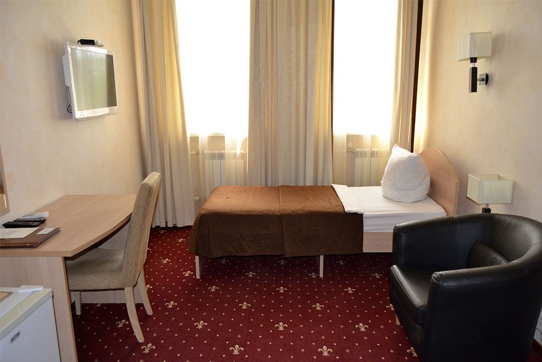Односпальная кровать,кресло,ТВ,Х,сейф,К,фен,с/у с ванной