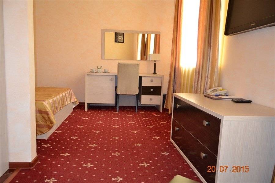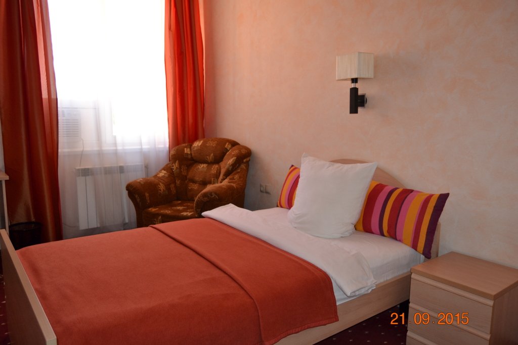 Двухэтажный корпус гостиницы разместился в тихом спальном районе города с малоэтажной застройкой. Для проживания предлагается 38 номеров нескольких категорий. Номера выполнены в классическом стиле, оборудованы индивидуальным санузлом с ванной. В комнатах находится телевизор, холодильник, кондиционер, фен, сейф. В холлах гостиницы установлены кулеры с водой. В свободном доступе беспроводной интернет wi-fi. Отдыхающие могут воспользоваться услугами прачечной.