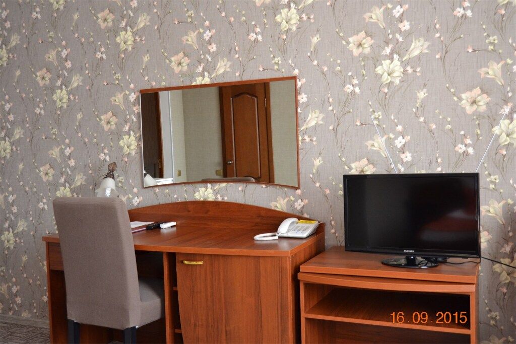 Wi-Fi, телефон, холодильник, кондиционер, светильник, настольные лампы, фен, ванна, санузел, халаты, банные полотенца, тапочки, косметические средства, полутораспальная кровать, унитаз, раковина, кулер на этаже, без питомцевВ гостиничном номере