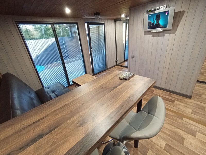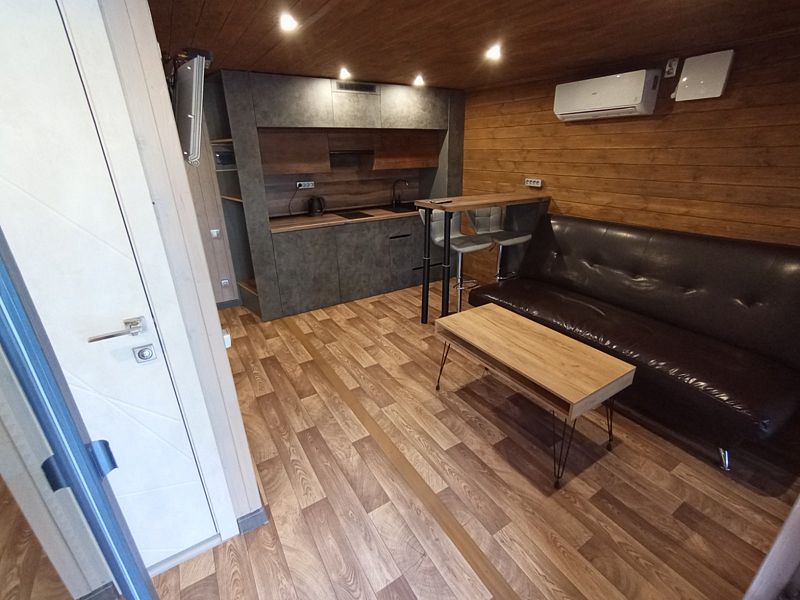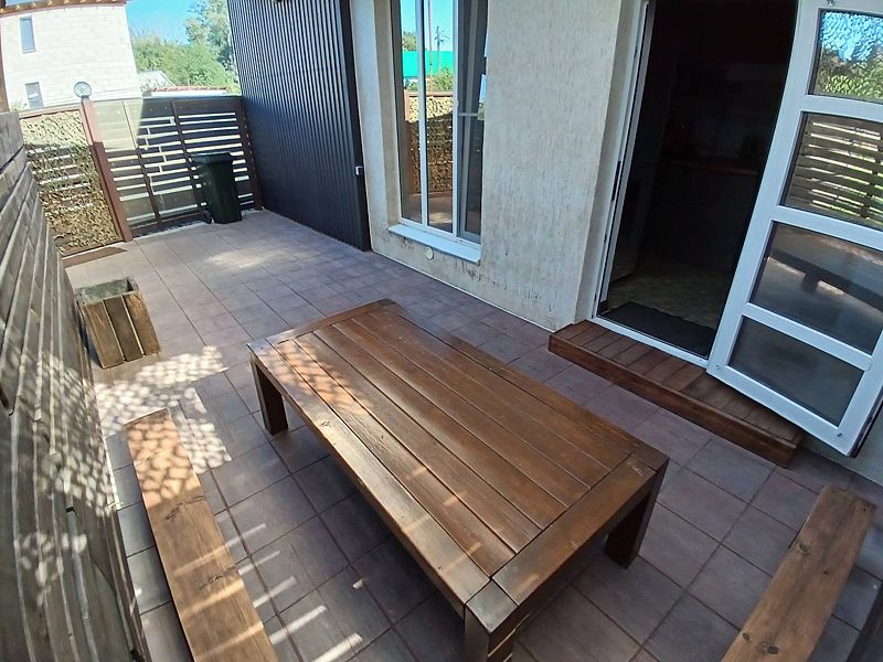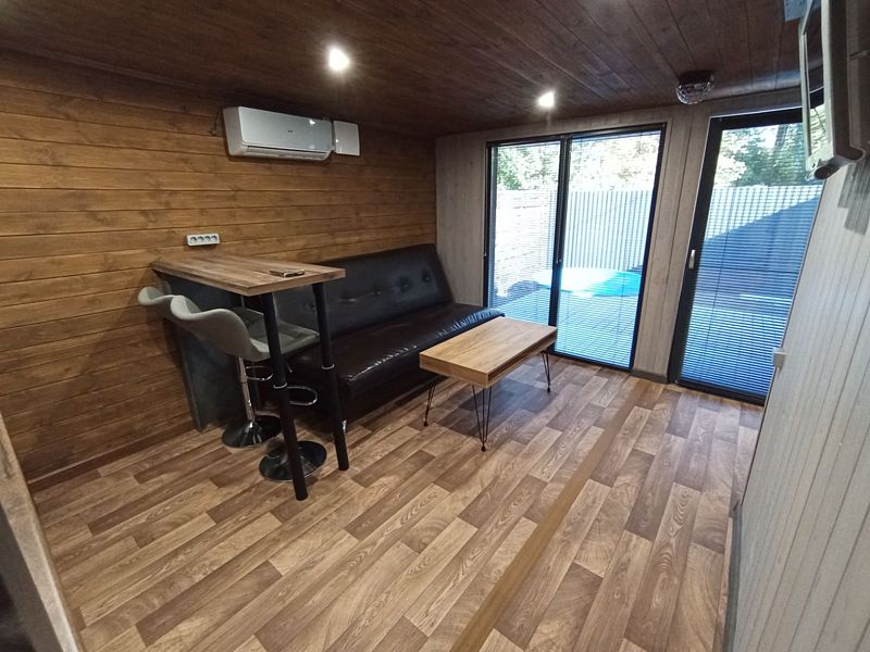 Дом небольшой, но уютный и теплый благодаря системе теплых полов. В доме есть бассейн, музыкальное и световое оборудование, телевизор, небольшая кухня с электрическим чайником, микроволновой печью и холодильником, два раскладных дивана и двуспальная кровать, кондиционер.