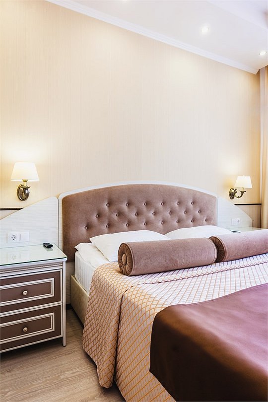 Классический двухместный номер с кроватью и балконом средней площадью 16-18 кв. м. с видом на живописный парк или во внутренний дворик. Высокие комфортабельные профессиональные матрацы и белье из шелковистого сатина обеспечат прекрасный сон. В отделке номеров использованы экологически чистые материалы: на полу натуральное покрытие, стены оклеены бельгийскими обоями Эко-Джокер, текстильное оформление из итальянского негорючего полотна Trevira, постельное белье - сатин высокого качества (100% хлопок).Услуги и удобства