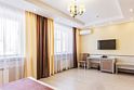 Просторный, светлый номер средней площадью 33 кв. м с высокими потолками, двумя большими окнами и роскошным видом на парк имени А.С. Пушкина. Прекрасный выбор для деловой поездки и комфортного отдыха. Два ЖК-телевизора, высокие комфортабельные кровати и белье из шелковистого сатина обеспечат прекрасный сон.Услуги и удобства