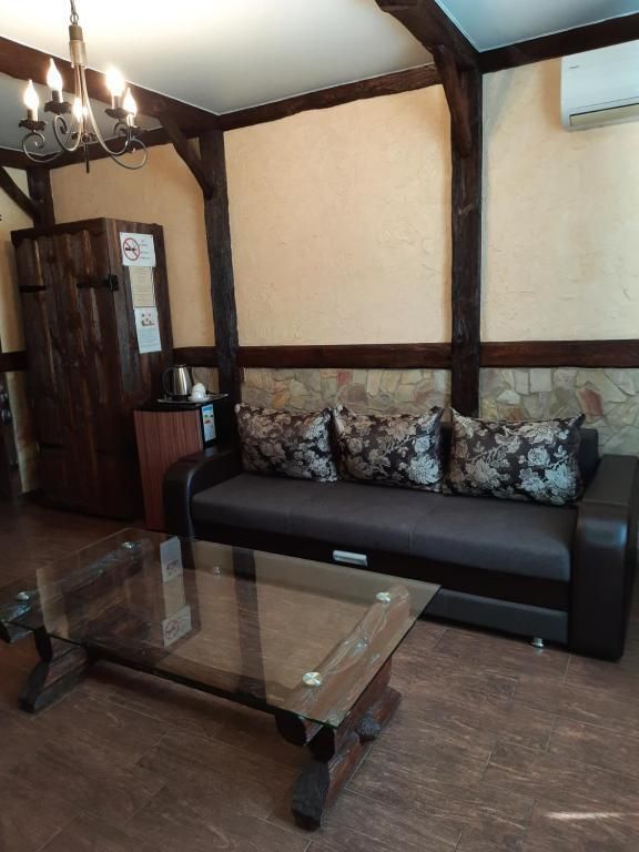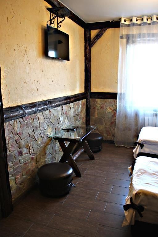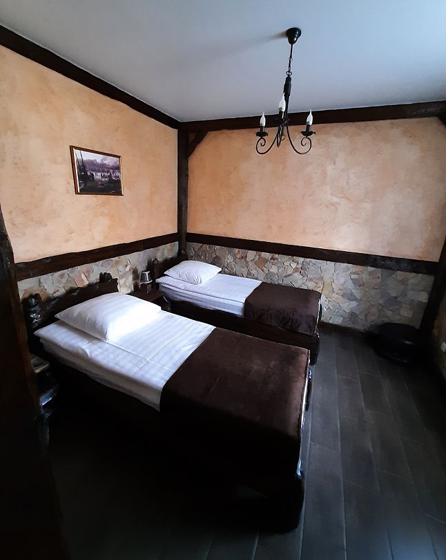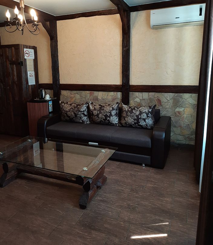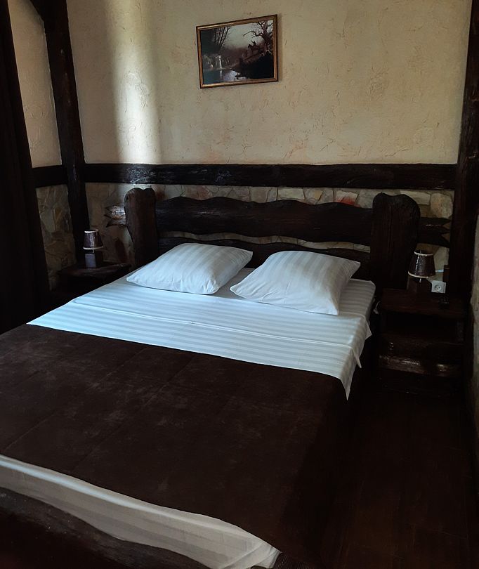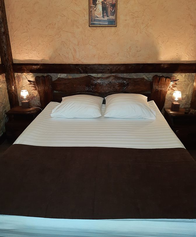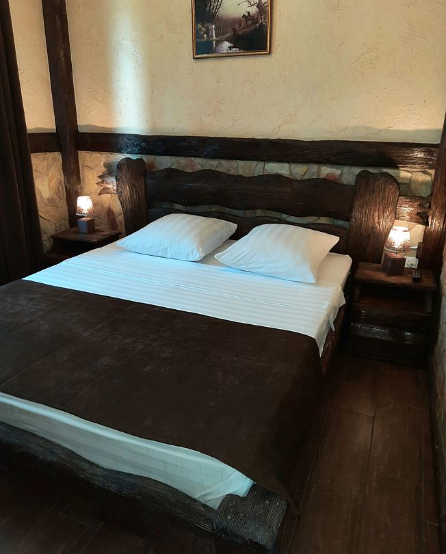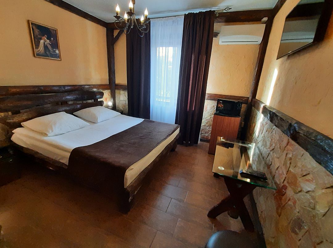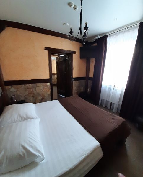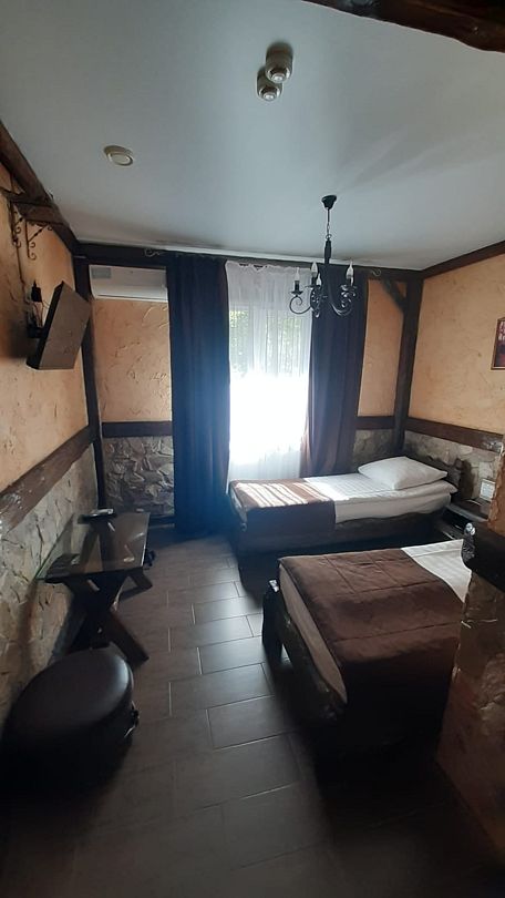 Здание отеля, стилизованное под средневековый замок, занимает небольшую закрытую территорию. Камерный жилой фонд включает в себя комфортабельные номера разных категорий, включая бюджетные варианты с санузлом на блок. Комнаты оформлены в историческом стиле, везде есть телевизор, удобная мебель, в большинстве номеров – персональный санузел.