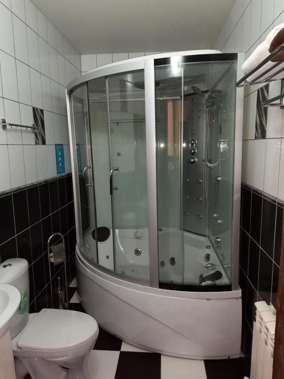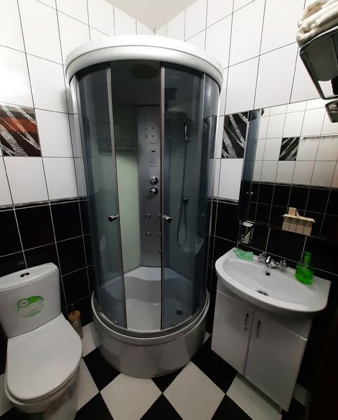Три односпальные кровати, телевизор. Общая кухня. С/у с душевой общие на два номера.
