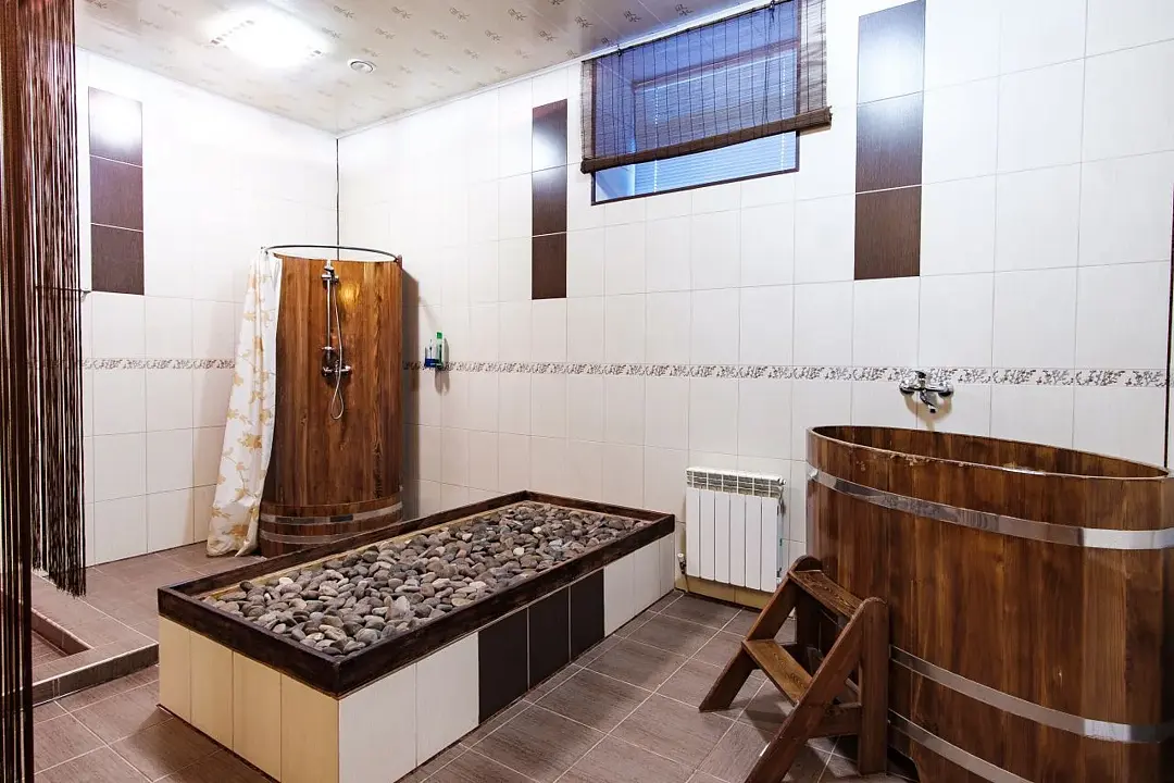 Инфраструктура: зона отдыха, душТемпература парения: до 90 °CОптимальная вместимость русской сауны — 10 человек, максимальная – 25 человек.