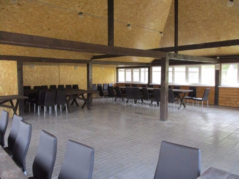 На территории базы есть уютная беседка для посиделок и просторная Летняя беседка, которая идеально подойдёт для проведения тожества. Также имеется банкетный зал и бар.