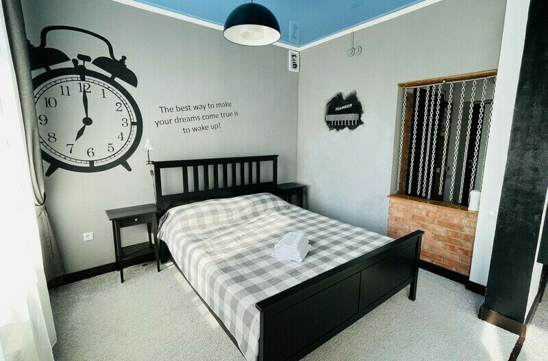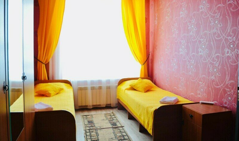 Пять односпальных кроватей, шкаф в каждой комнате, тумбочки, сплит-система, с/у раздельный (душ/туалет).