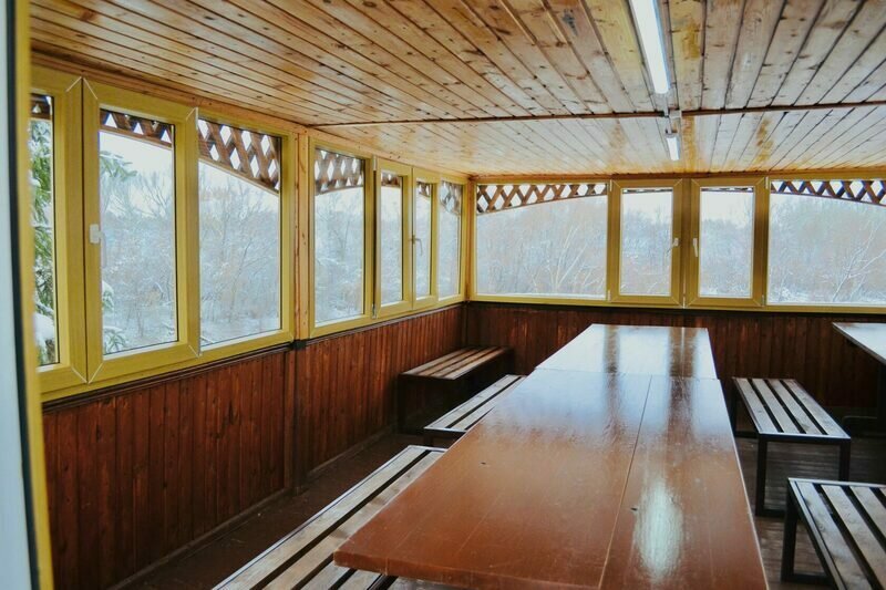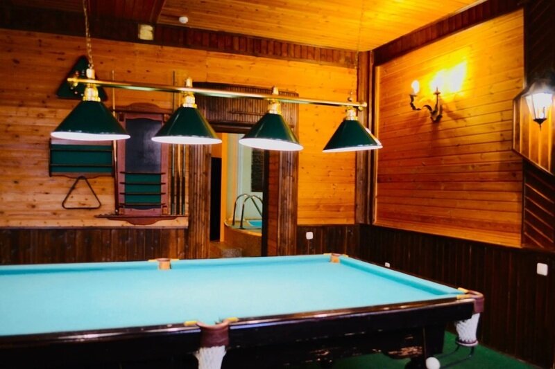 На территории предусмотрена русская баня на дровах, есть сауна с бассейном и бильярдом., несколько беседок с мангальными зонами. Также работает кафе, где гости кроме ежедневного завтрака, могут заказать обед или ужин.