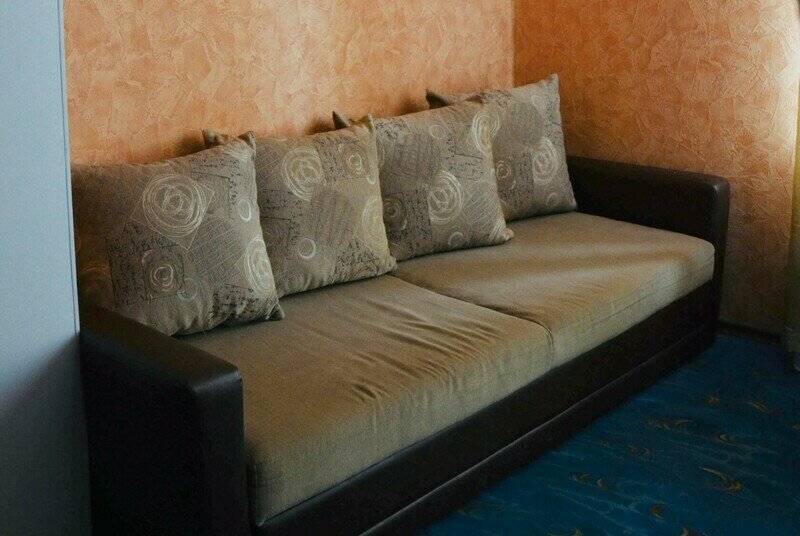 Двуспальная кровать, диван, телевизор с плоским экраном, комод, шкаф, журнальный столик, тумбочки, холодильник, сплит-система, чайник, с/у раздельный (душ+таулет)